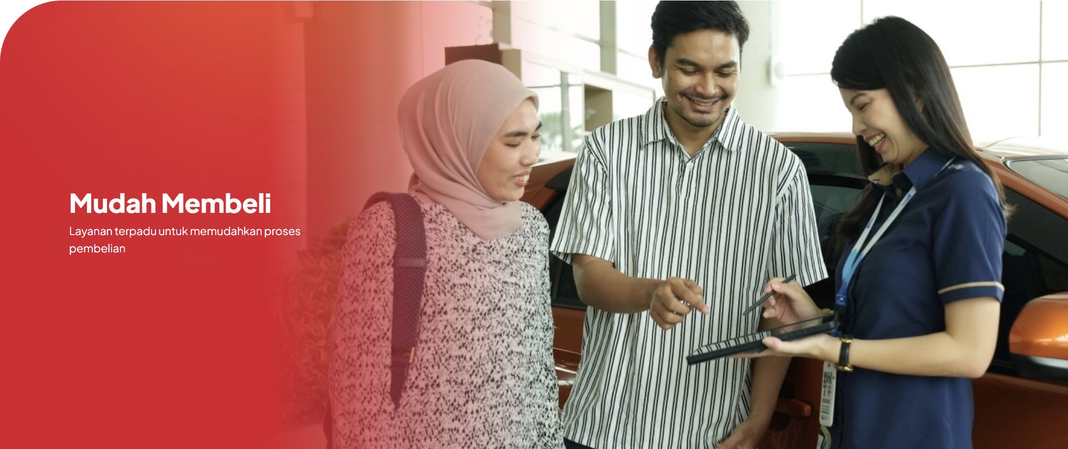 Layanan terpadu untuk memudahkan proses pembelian. Membeli mobil Daihatsu kini semakin mudah. Kami telah menyederhanakan proses pembelian agar Anda dapat memiliki mobil impian tanpa repot. Mulai dari pemilihan tipe kendaraan, perhitungan kredit, hingga proses administrasi, semuanya dapat dilakukan dengan cepat dan mudah.