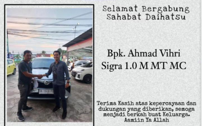 Alhamdulillah, terima kasih atas kepercayaannya. Semoga Daihatsu-nya menjadi ladang berkah dan kebahagiaan.